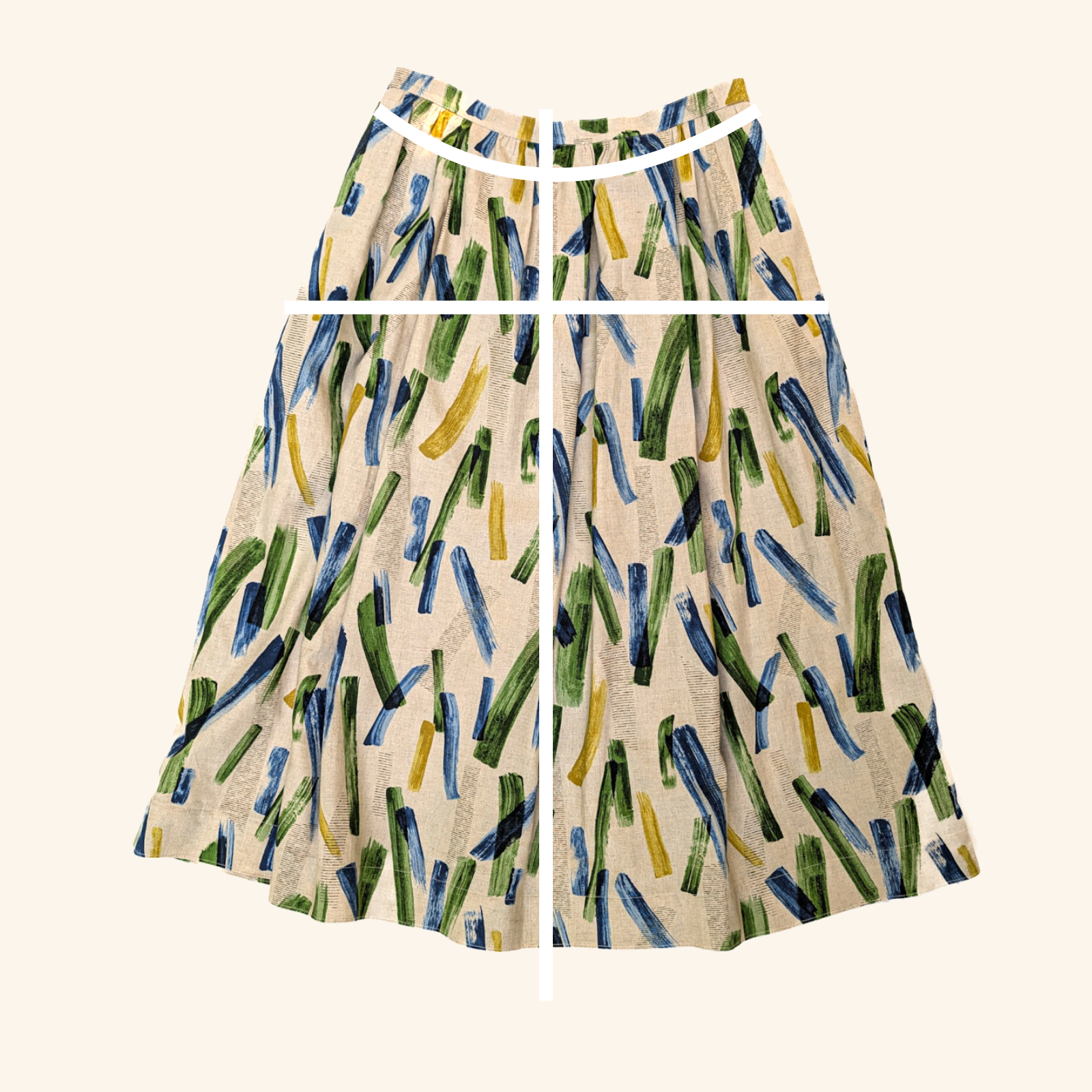 The Daisy waistband is flat in the front and elasticated at the back, which makes it comfortable to wear all day long. Because of this, you can pull the skirt on over your hips or head - something to keep in mind when considering the fit. I can pull this over my size 18 hips with ease. Use the garment measurements below to compare against other items in your wardrobe to see how it will fit.