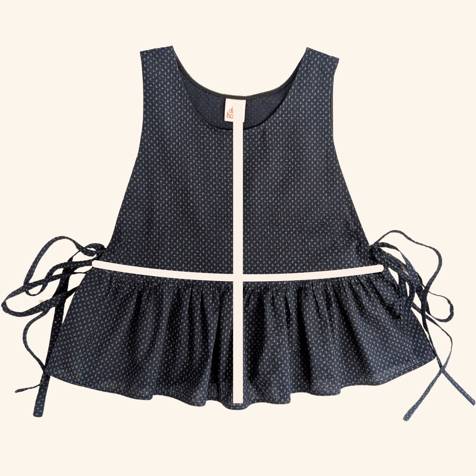 The style of this top means it will fit a range of different sizes and shapes as you can adjust the long ties at either side to your preferred fit. I’d say it’s a good fit for a UK size 12 - 16 and could work for someone a little bigger or smaller depending on how you’d like to wear it. It’s a little more cropped than other daisy tops.
